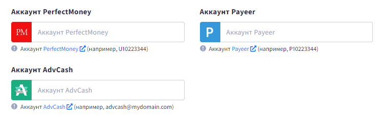 Ваши платёжные аккаунты вы можете заполнить в настройках профиля: https://everve.net/user-profile/